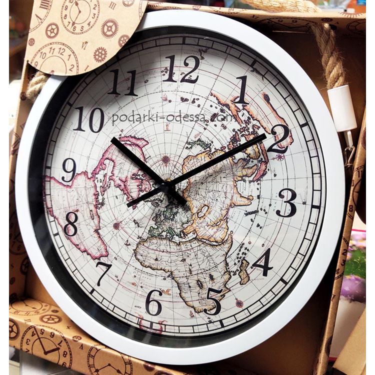 Оригинальный морской подарок в виде декоративных настенных часов. Они выполнены в круглой форме, с циферблатом - картой мира. Красивый дизайн порадует всех любителей моря. Морские часы крепятся на стену с помощью каната.