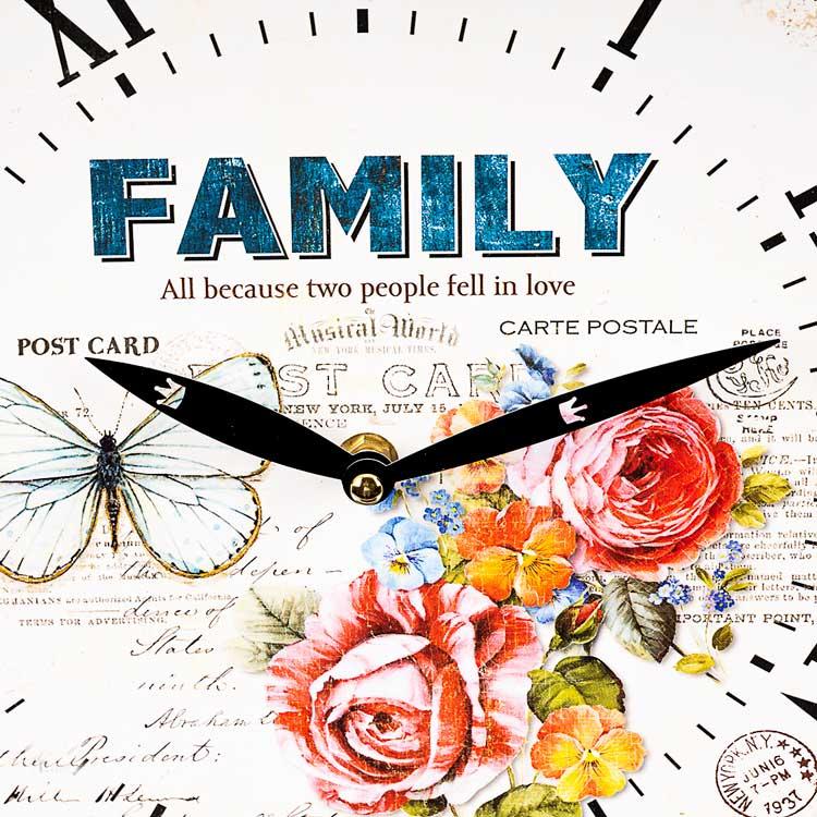 Часы настенные «Family». Оригинальные семейные часы с красивым принтом и надписью family. Отличное качество при низкой цене. Размер 29 см. (диаметр).