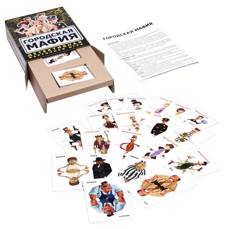 Городская мафия - популярная настольная карточная игра. Имеет свой сюжет и ролевые особенности. Вечно противостояние добра и зла - мафии и обычных людей. Отлично подходит для развлечения большой компании на любой вечеринке или в тихом семейном кругу. Предназначена не только для взрослых, но и для детей - помогает развивать мышление, наблюдательность, усидчивость, сообразительность.