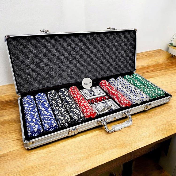 Покерный набор на 500 утяжелённых фишек в стильном алюминиевом чемодане — это всё, что нужно для настоящей игры с атмосферой казино.