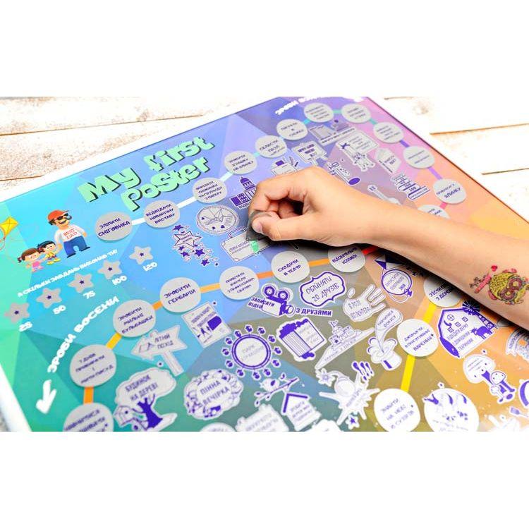 Детский Скретч постер My First Poster сделан в Украине из качественных материалов. Рекомендуется детям от 6 до 12 лет. На украинском языке.